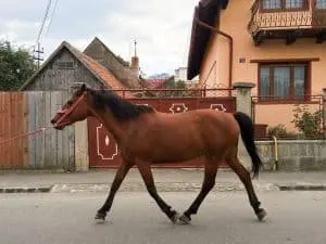 Horses in the streets of Zarnesti, near the Carpathian mountains in Romania Horses in the streets of Zarnesti, near the Carpathian mountains in Romania